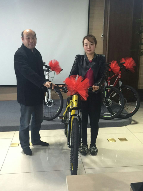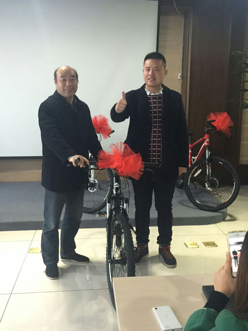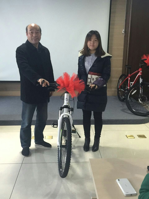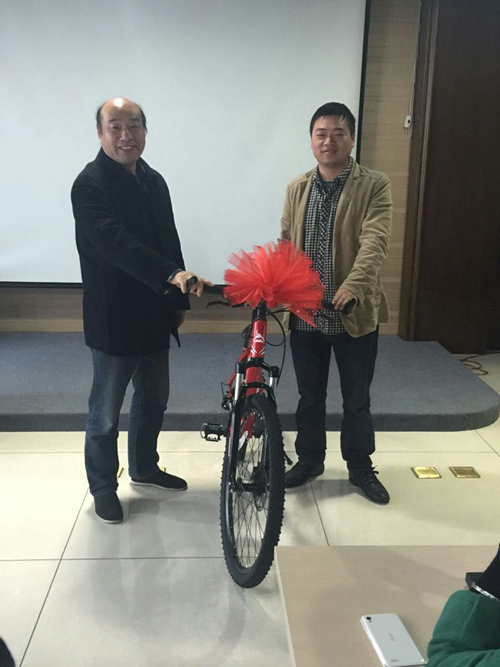 早上8點05分陳總召集大家進行早會。會上,陳總對于11月份中國門都網(wǎng)和手機網(wǎng)站簽新單業(yè)績前五名的同事進行了獎勵,11月業(yè)績前五名同事分別是:范麗、宋瑞君、金李俊、林夢瑤、馬春偉。獲得了上個月競賽的獎品美利達自行車。