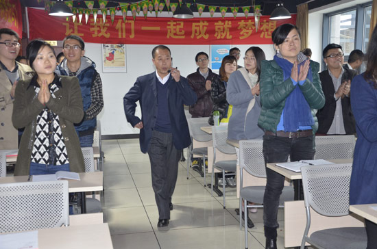 26日下午,環(huán)訊傳媒2013年度精英訓(xùn)練營正式進(jìn)入第三環(huán)節(jié)——電話營銷的培訓(xùn)。此次培訓(xùn)的主講人為中國營銷戰(zhàn)術(shù)專家同時也是環(huán)訊商學(xué)院顧問王學(xué)群老師。
