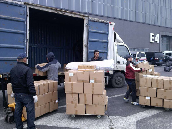 (環(huán)訊傳媒一行去物流公司領(lǐng)取先前寄出的《中國門都門企大全》)